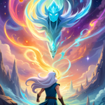 a painting of a woman standing in front of a dragon
